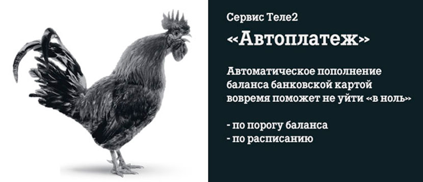 «Автоплатеж» — представляет удобный сервис, моментального пополнения счета абонента сети оператора, при наличии действующего счета в банковском учреждении, и представляющий безопасный вариант для пользователя. При активной функции предложенной услуги, клиент компании Теле2 не будет задумываться о наличии лицевого счета, что позволит ему быть на связи в любой момент.