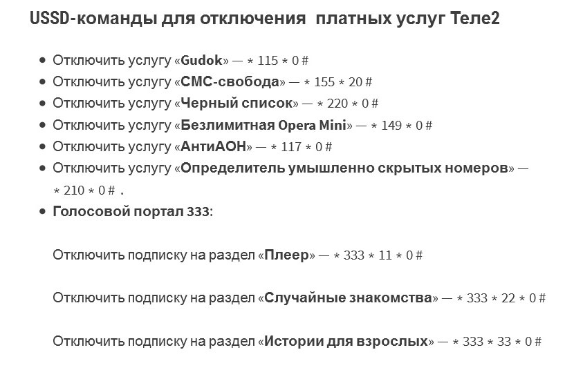 Часто абоненты Теле2 используют такие комбинации для отключения услуг: