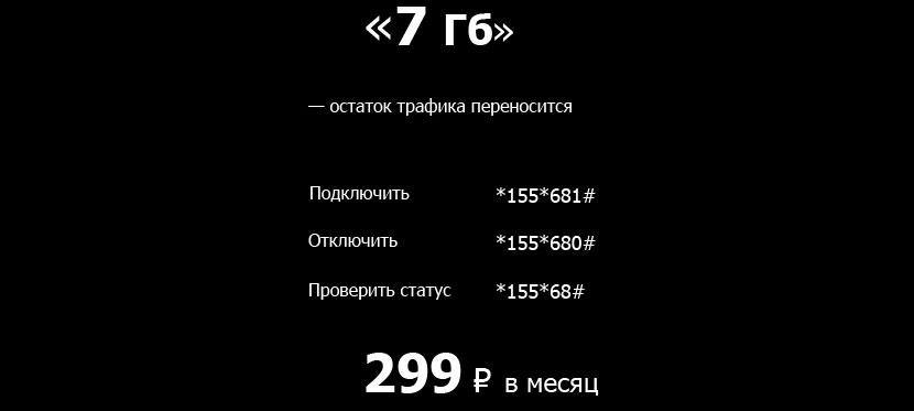 Получить 7ГБ для москвичей можно за 299руб в месяц, для жителей Санкт – Петербурга. 8ГБ за 290рублей. Подключить: *155*681#.